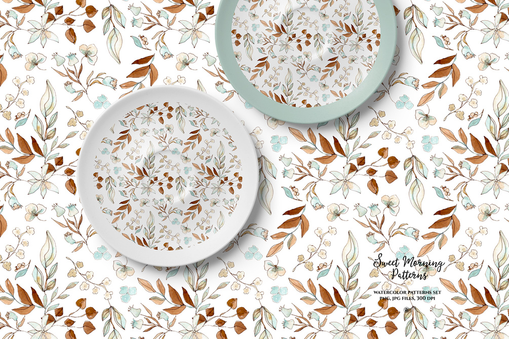 Sweet Morning Patterns - watercolor floral patterns set