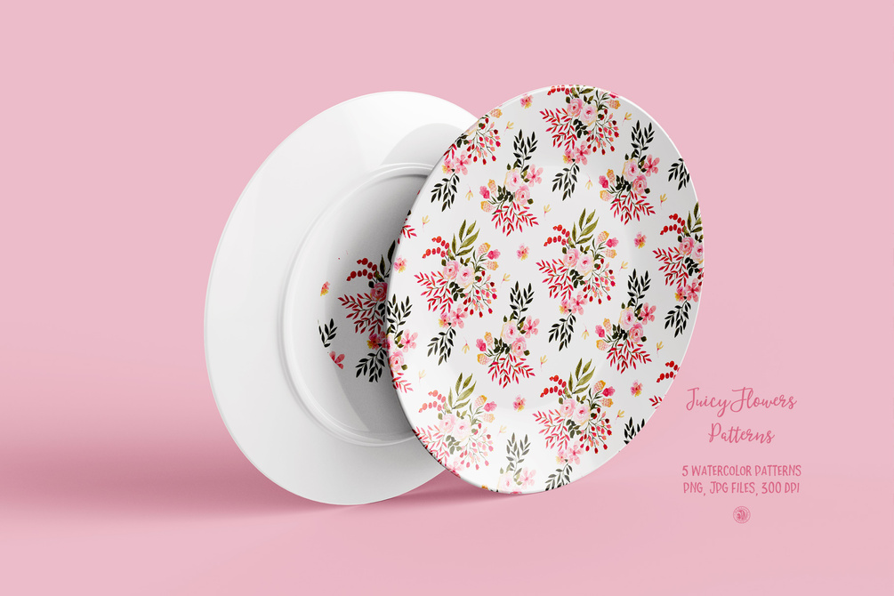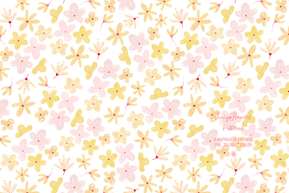Juicy Flowers Watercolor Patterns