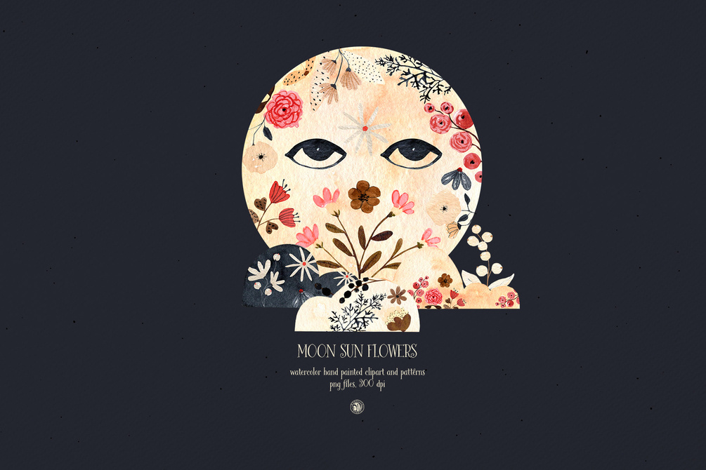 Moon Sun Flowers - watercolor clipart and patterns
