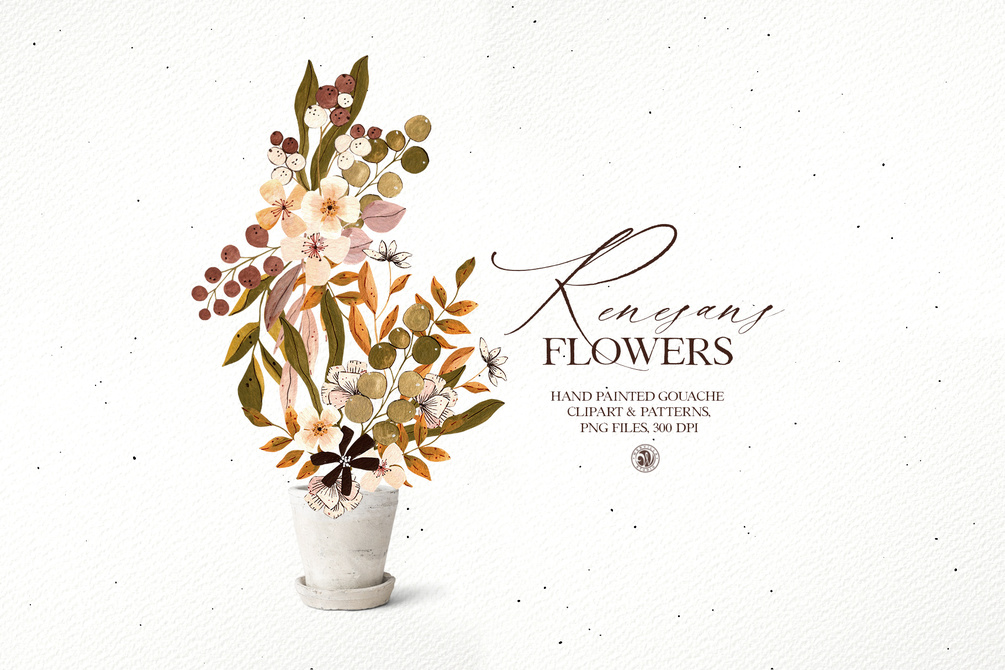 Renesans Flowers - gouache floral clipart and patterns